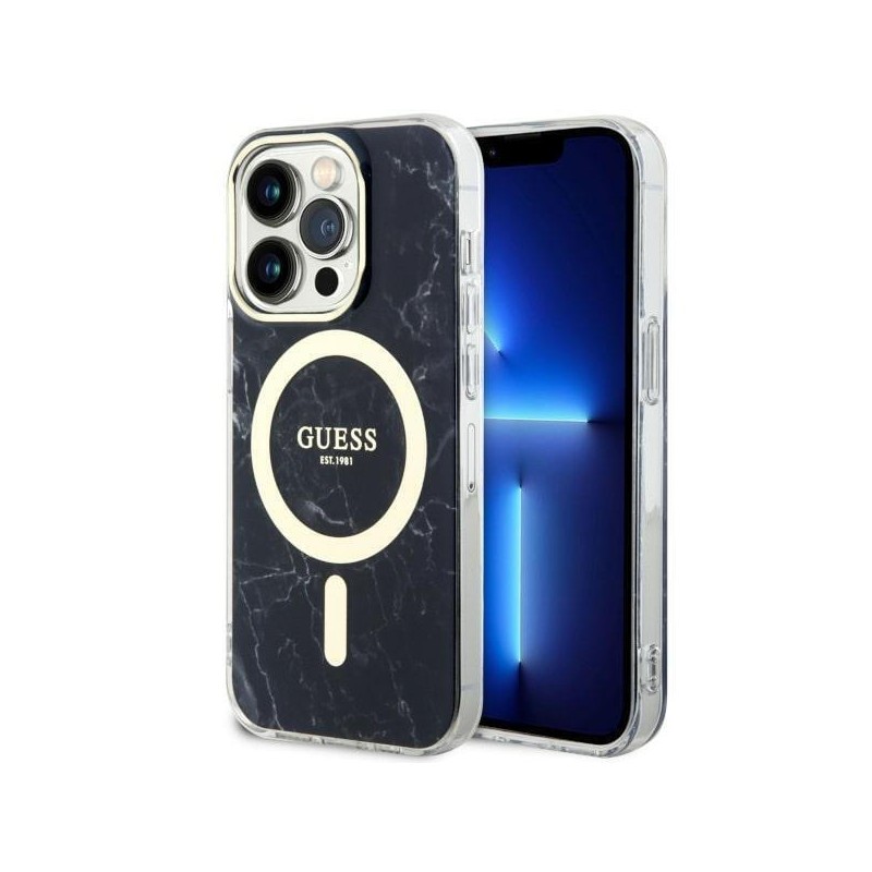 Guess "Marble Collection" Printed Stripe Θήκη προστασίας MagSafe με όψη μαρμάρου για Apple iPhone 14 Pro Max - Marble / Black