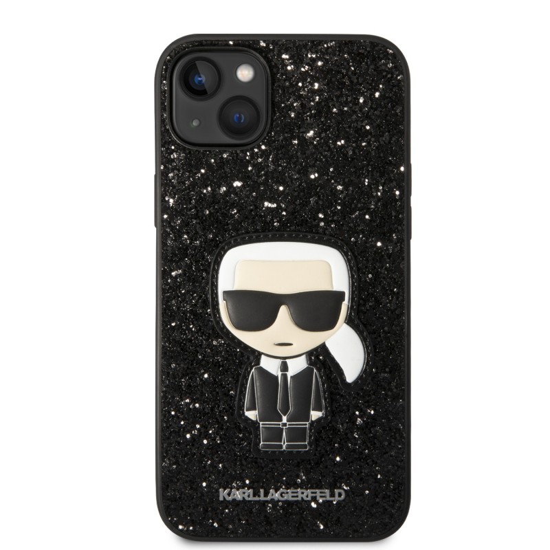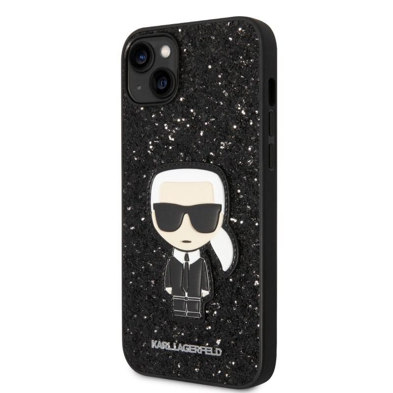 Karl Lagerfeld Glitter Flakes Case with Ikonik Patch and Metal Logo Θήκη προστασίας από σιλικόνη – iPhone 14 Plus (Glitter Black