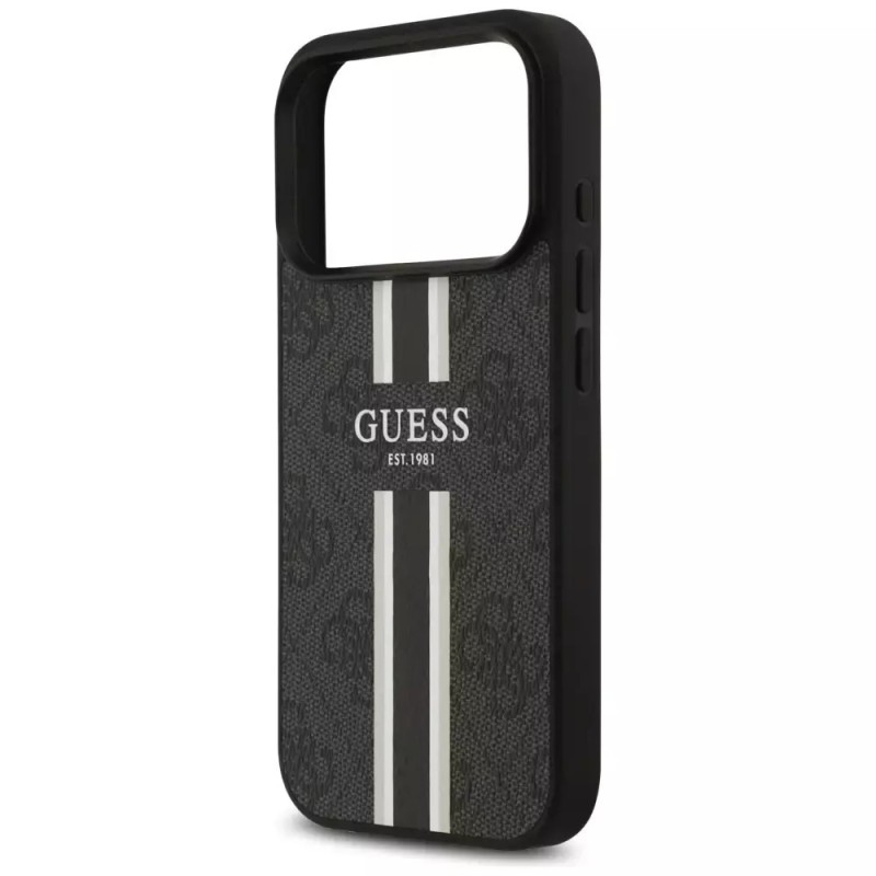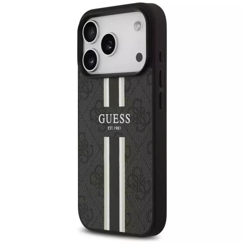 Θήκη Guess 4G Printed Stripes MagSafe με Επένδυση Συνθετικού Δέρματος για iPhone 17 Pro Max - Μαύρο