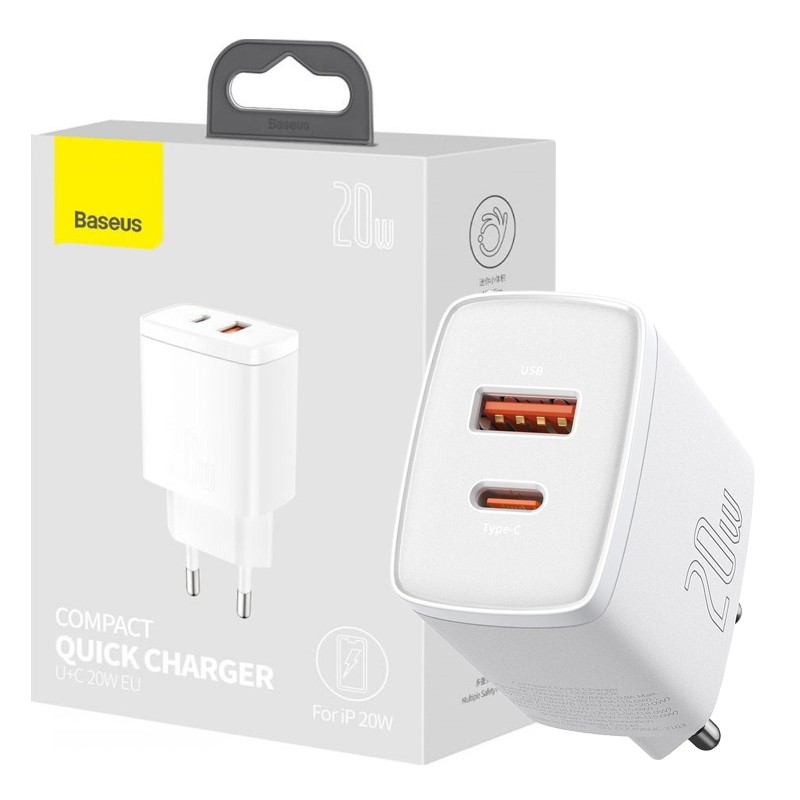Baseus Φορτιστής Compact με USB-A και Type-C 20W - Λευκό
