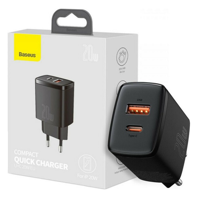 Baseus Φορτιστής Compact με USB-A και Type-C 20W - Μαύρο