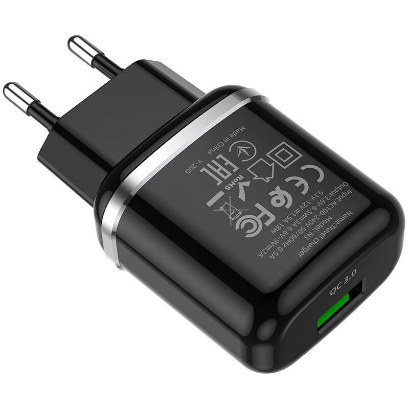Ο HOCO (N3 Vigour) Φορτιστής Τοίχου σε Μαύρο προσφέρει 18W Quick Charge 3.0 μέσω θύρας USB-A, χωρίς καλώδιο, για γρήγορη και αξιόπιστη φόρτιση.